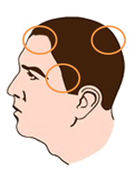 La topographie du dégarnissement (tempes, front et haut du crâne), la présence de petits cheveux en bordure de la zone atteinte, l’existence de cas d’alopécie dans la famille sont des renseignements très évocateurs, mais INSUFFISANTS pour affirmer à coup sûr une Alopécie Androgénétique Masculine.