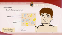 L’homme a naturellement la peau grasse et brillante, car la sécrétion sébacée est plus abondante et les glandes sébacées nombreuses et grosses.